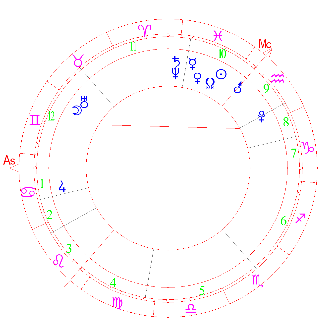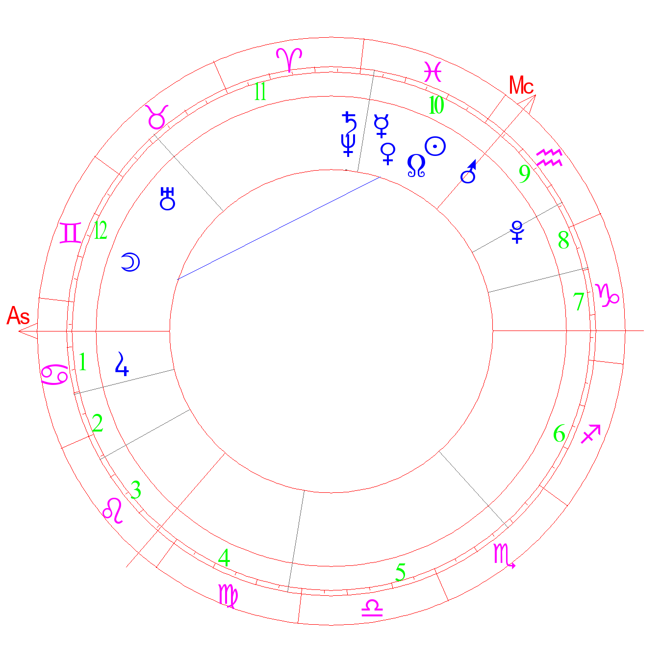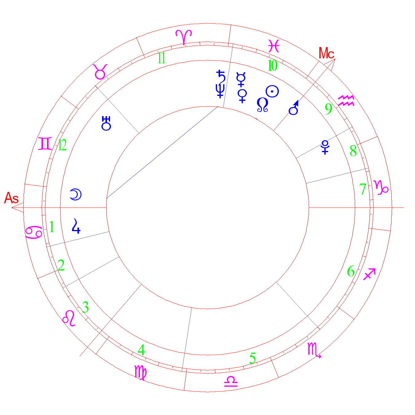 The convent of Neptune. The degree of genius. The degree of astrologists. Mystic degree. Higher insight, prophecies, spirituality, religiosity, mystic abilities. Secrecy, large hidden agenda in life (ASA). Declamatory skills, aptitude for art, imagination, interest in the cult. The degree of Saturn (Kefer)